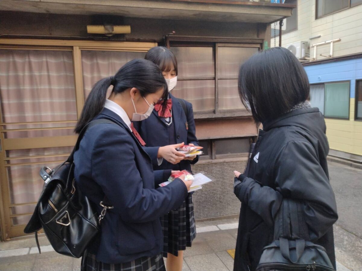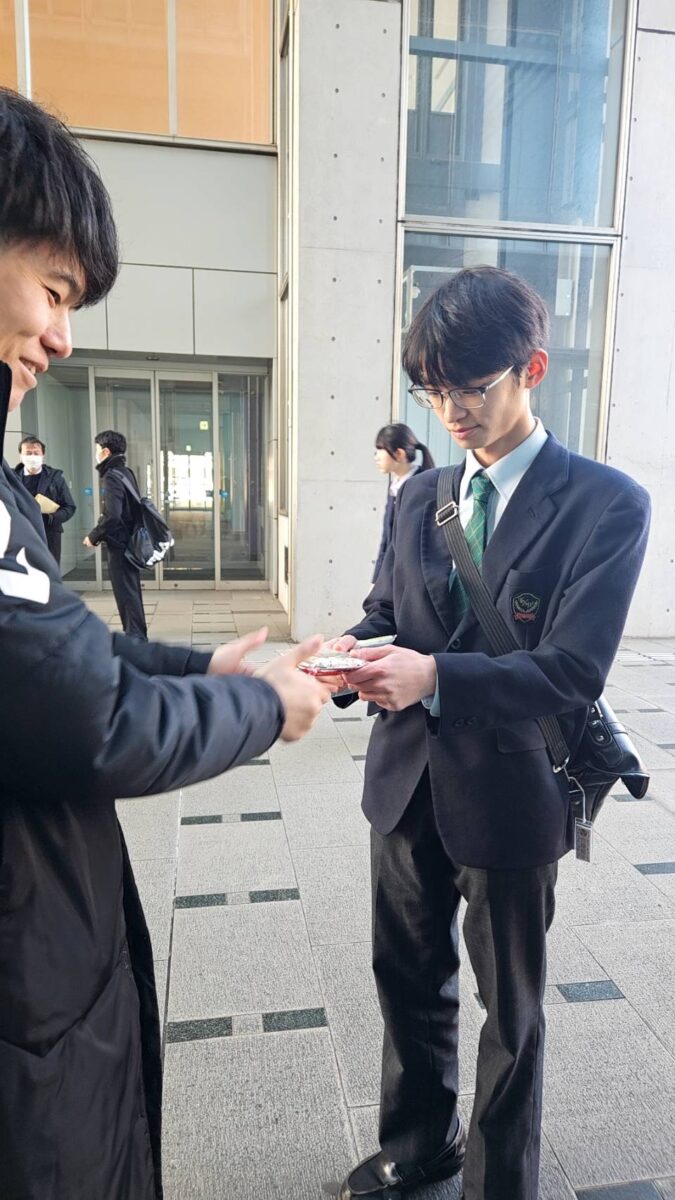 試験開始前、3年生の先生方を中心に「応援グッズ」が手渡され、受験生のみなさんに最後のエールを送られていました。