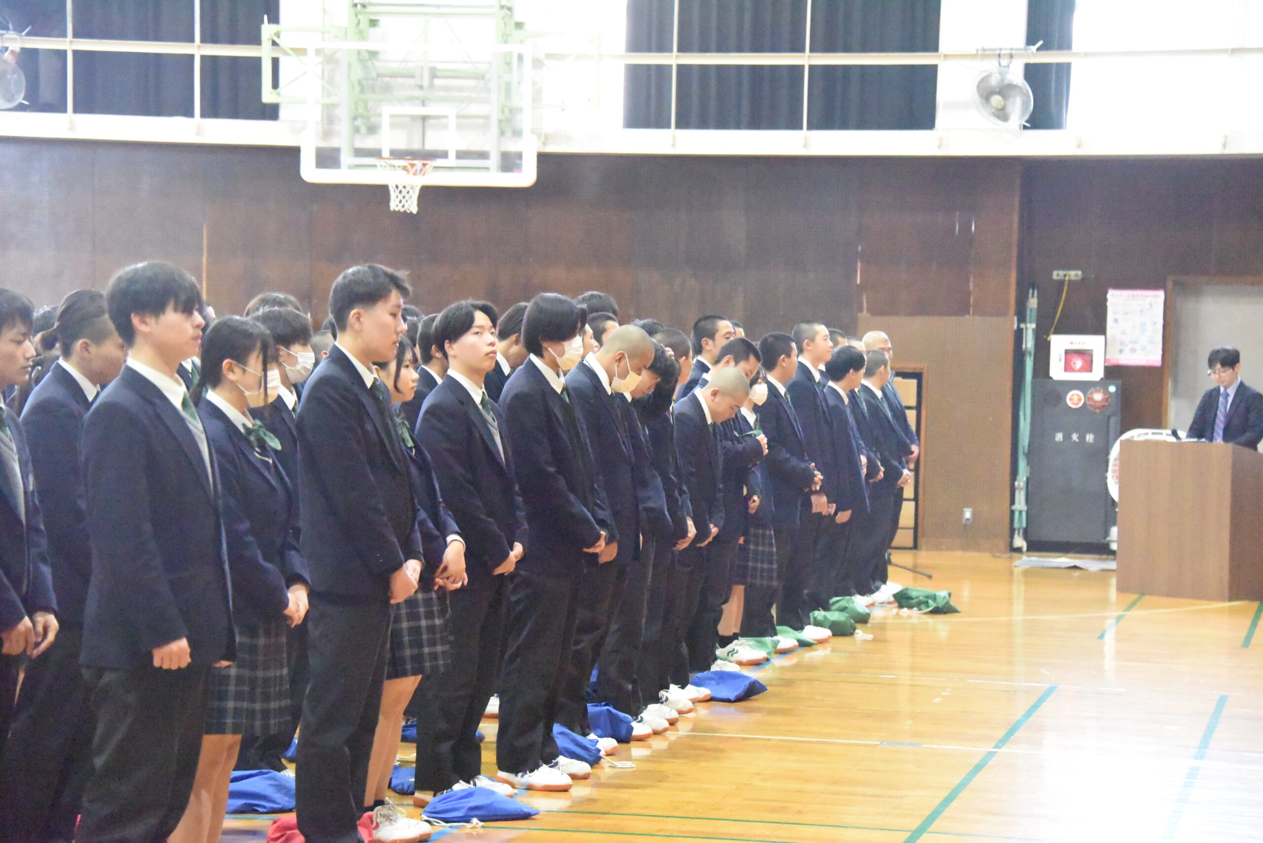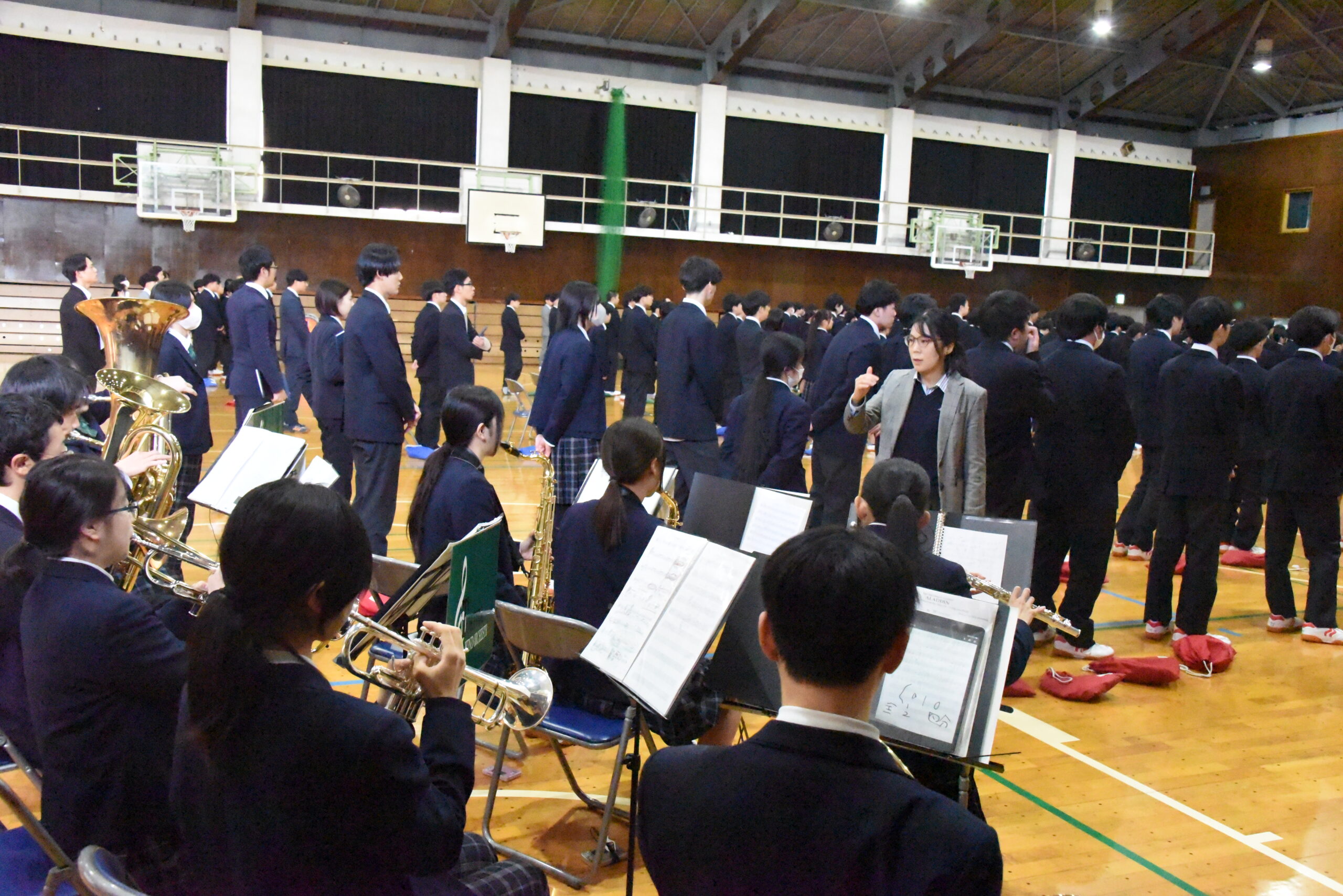 3学期始業式。3学期は年度の総仕上げの学期でもあります。本日行われた始業式の中では、吹奏楽部の演奏のもと、全校生徒で校歌を斉唱しました。