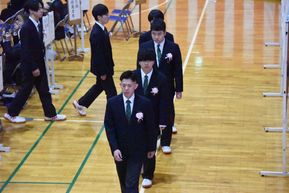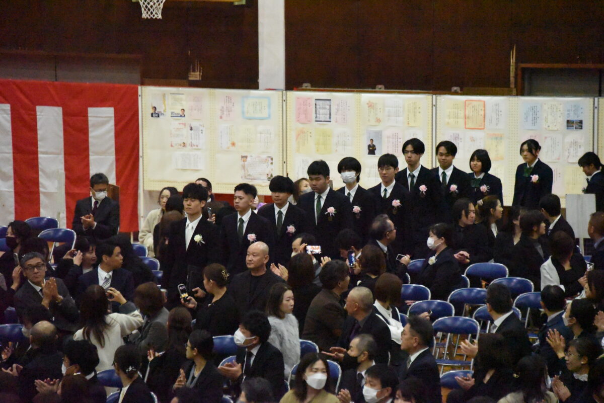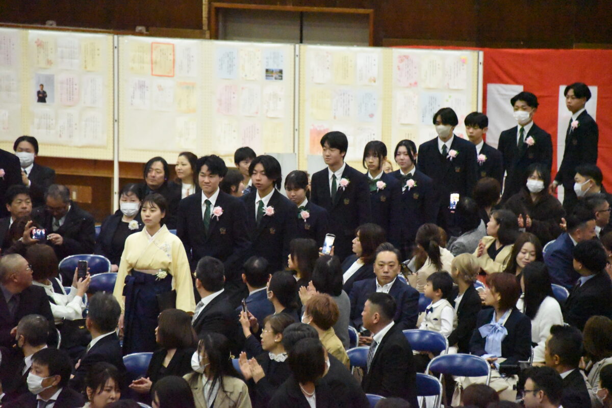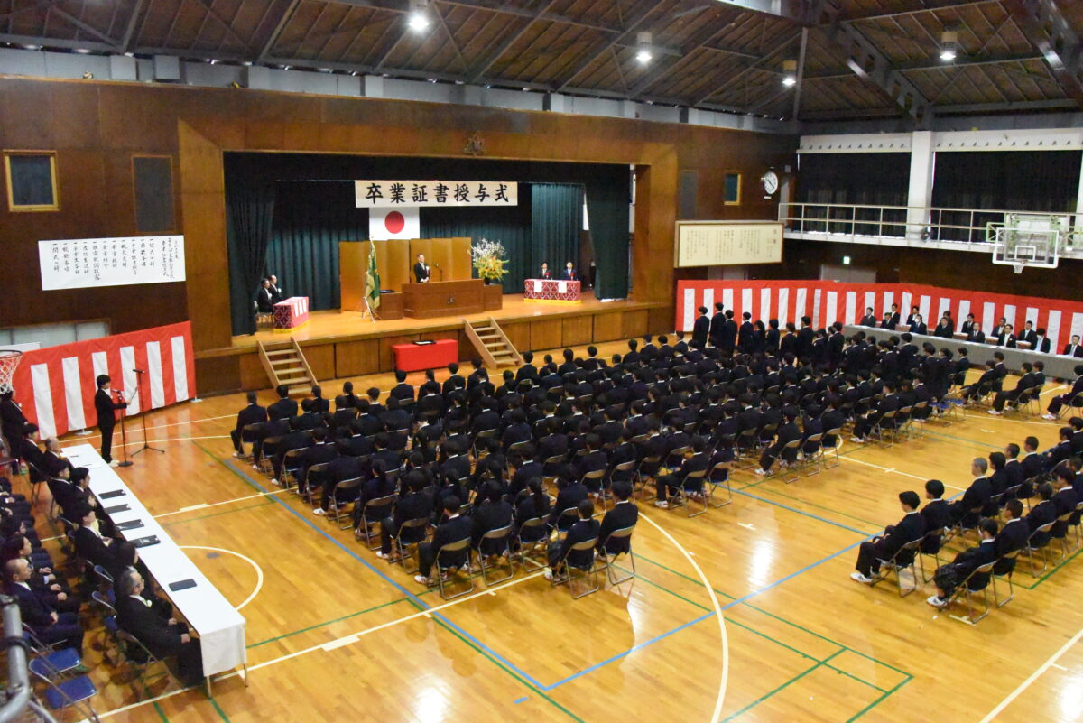 本校に入学した頃は、まだ、あどけなさが残っていた諸君も、今は堂々とした若者に成長しました。今日の日を迎えるまで、どの御家庭におかれましても、多かれ少なかれ、御苦労があったのではないかと思います。保護者等の皆さまにおかれましては、感慨もひとしおのことと拝察いたします。
