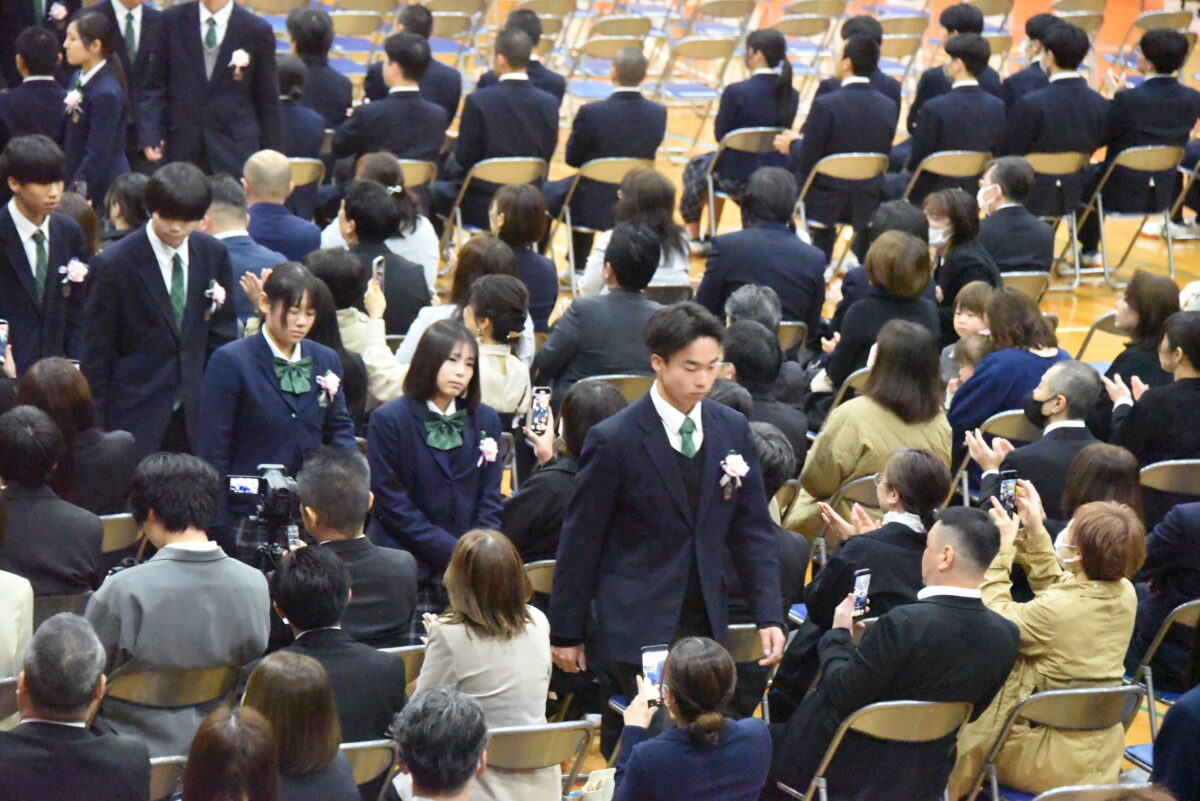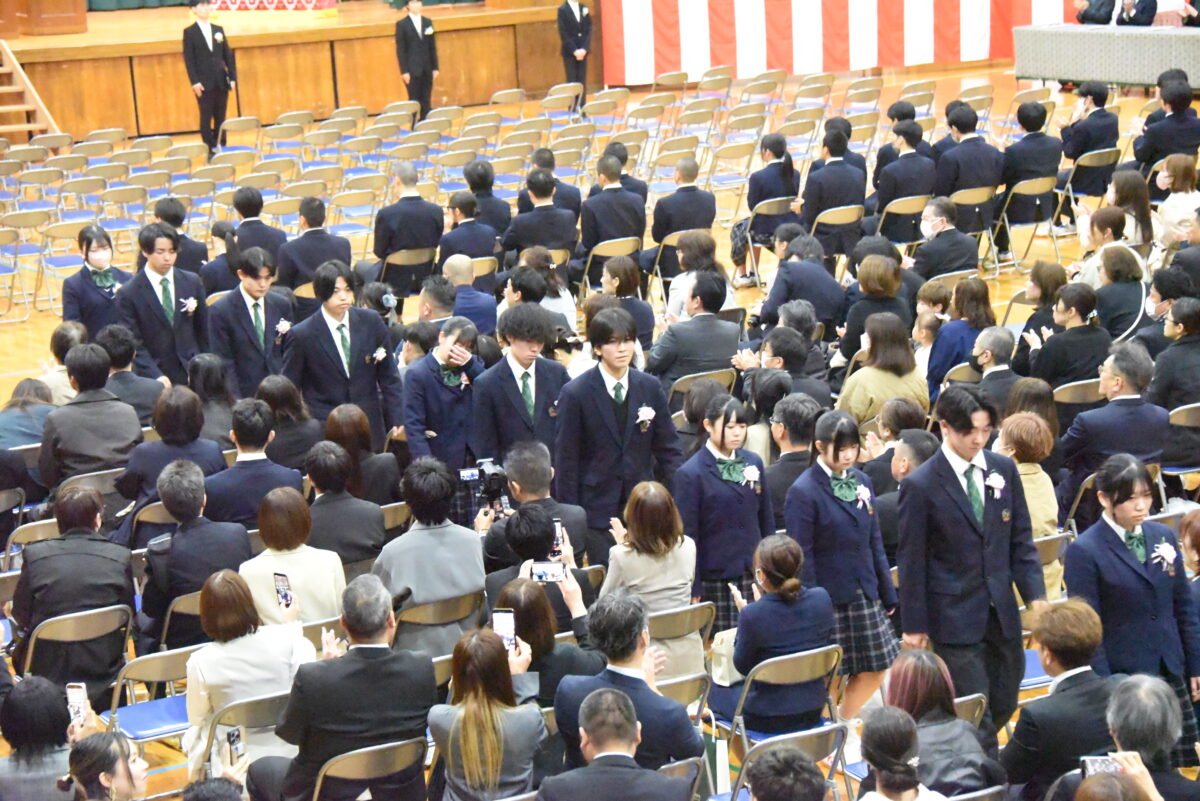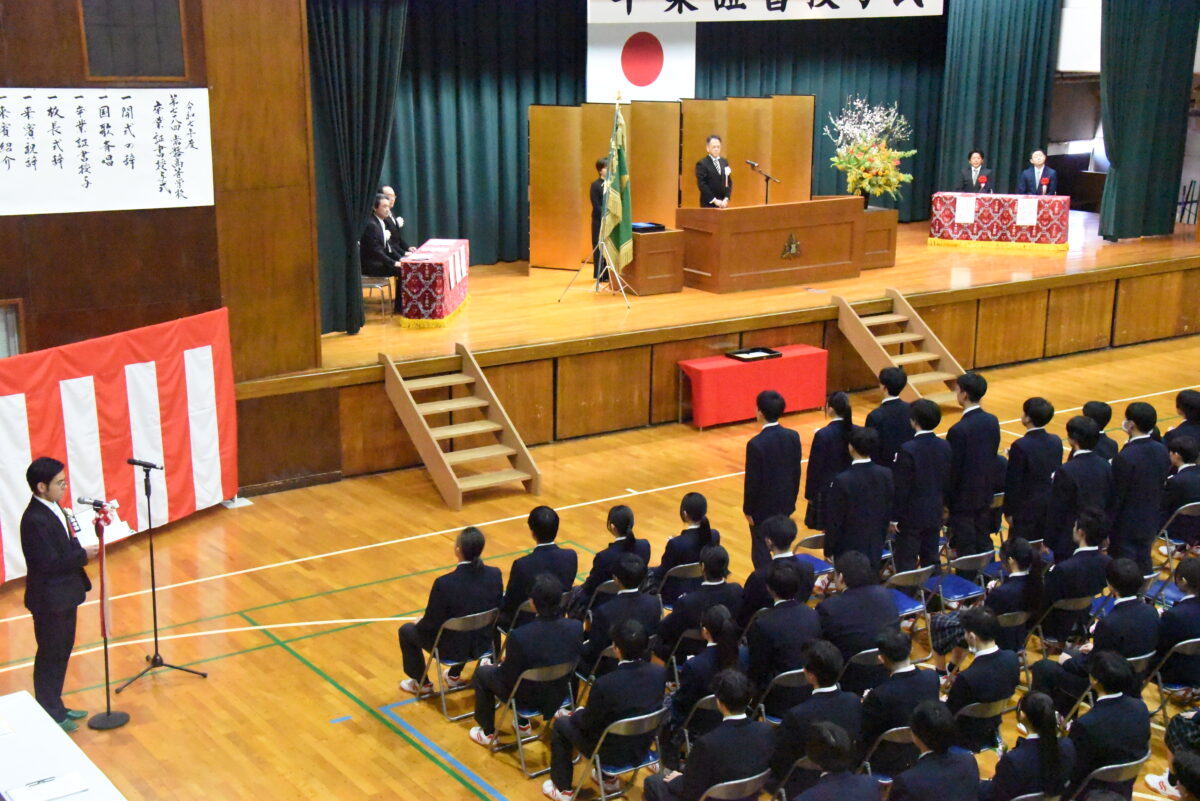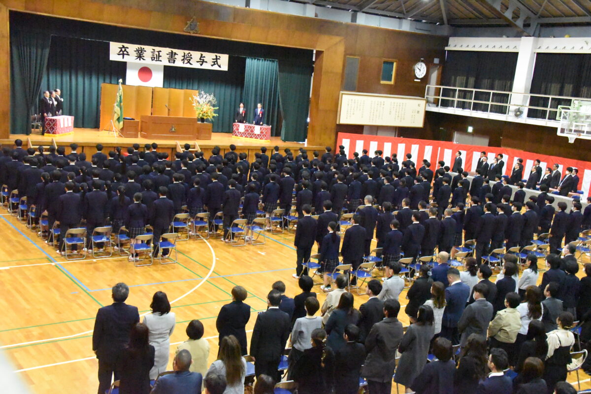 振り返ってみますと、諸君が入学した令和五年四月は、新型コロナウイルス感染症対策の一環として、新しい生活様式を踏まえた学習活動が展開されており、三密の回避など、制限の多い高校生活のスタートになりました。入学翌月の五月より、感染症法上の位置づけが見直され、学校生活も徐々に本来の姿を取り戻してきましたが、学校行事の実施方法などについては、縮小開催など、その都度の対応が求められ、諸君の力を十分に発揮するには、もどかしさを感じる場面もあったことと思います。このように、制約のある環境の中で高校生活をスタートさせ、その後、その制約が徐々に緩和されていく大きな変化の中で高校生活を過ごしてきた諸君が、本日、晴れて卒業の日を迎えました。
