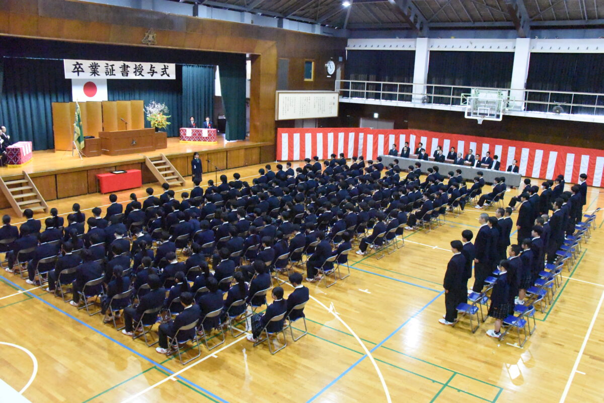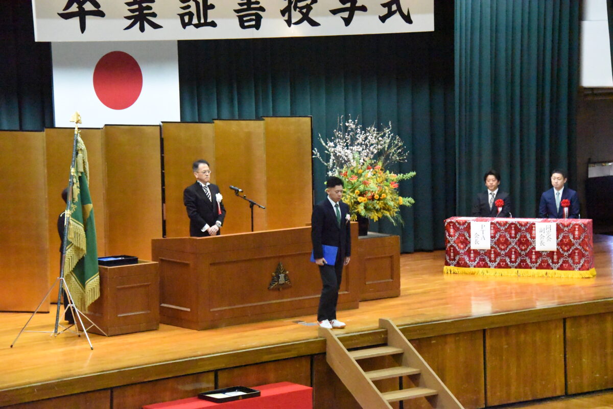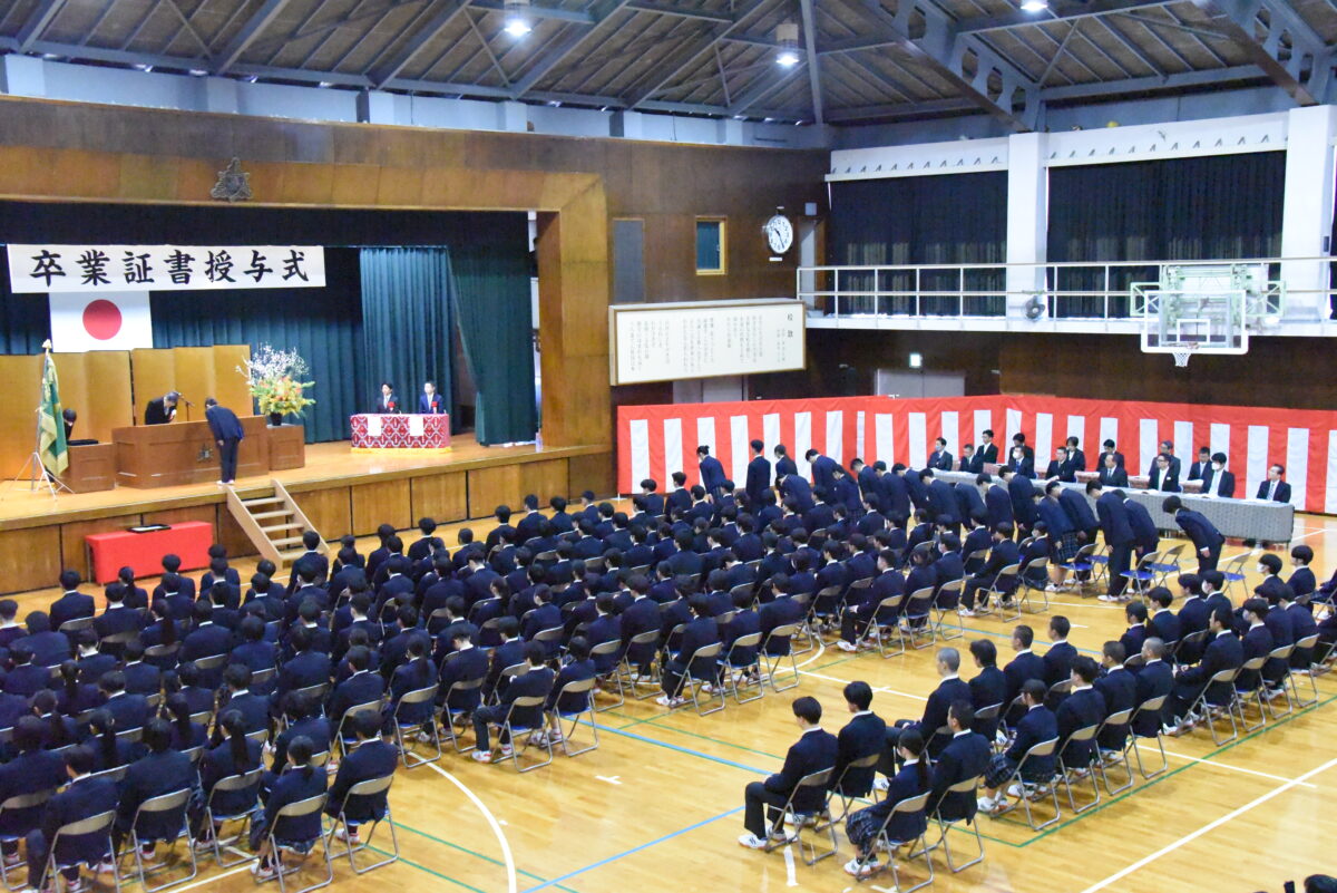 各クラスの担任が卒業生全員を呼名し、クラスの代表が卒業証書を授与します。