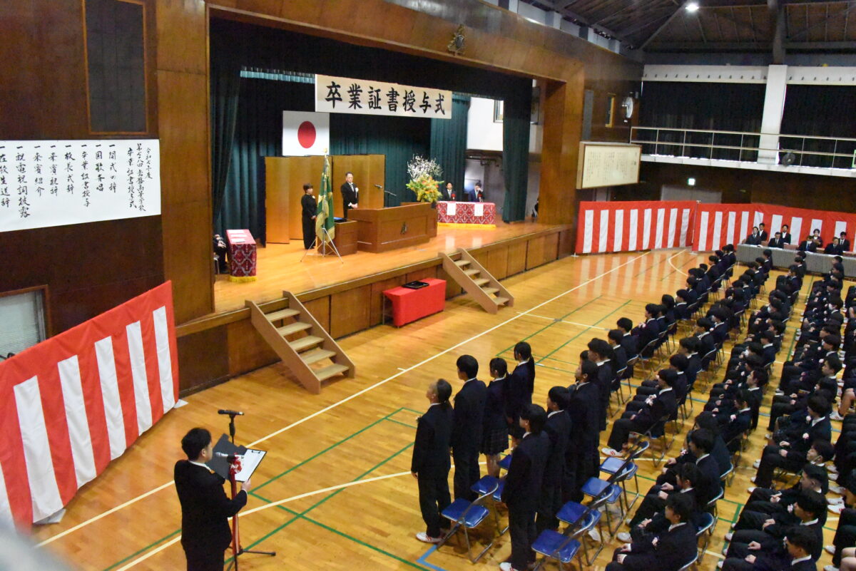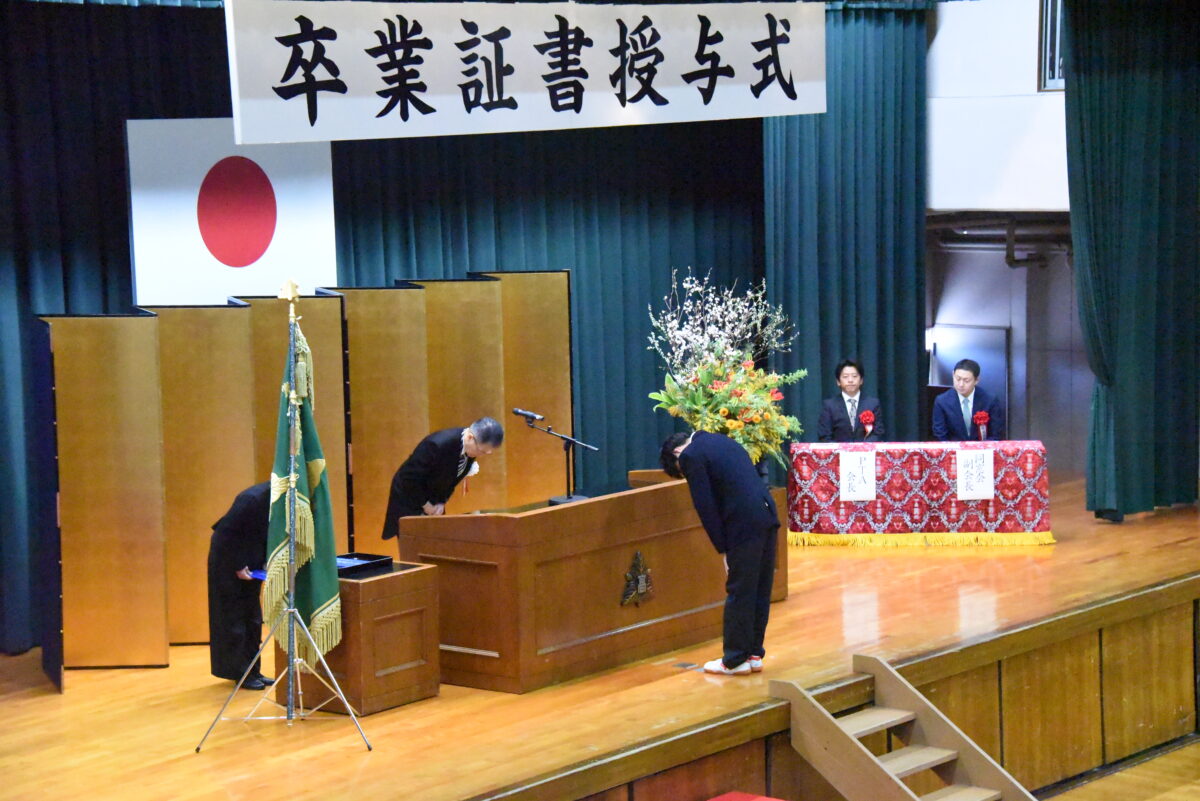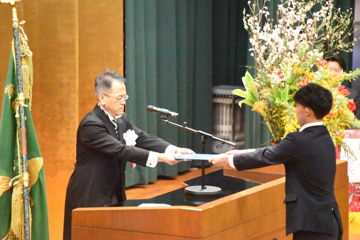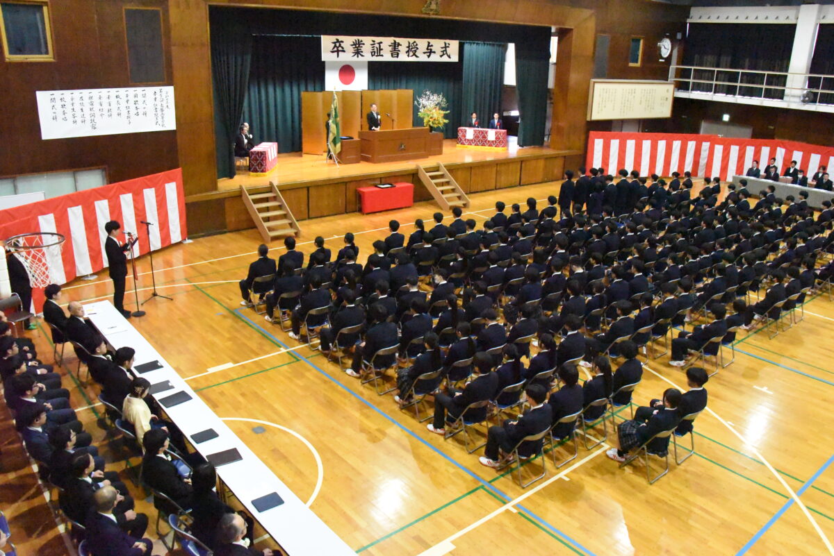 各クラスの担任が卒業生全員を呼名し、クラスの代表が卒業証書を授与します。