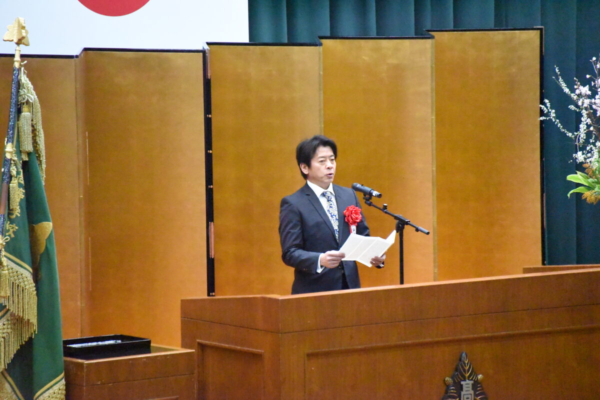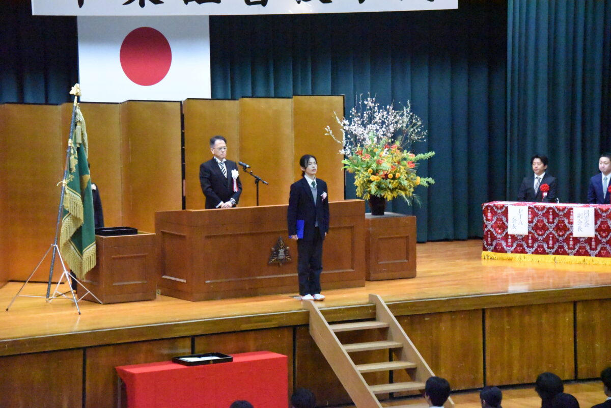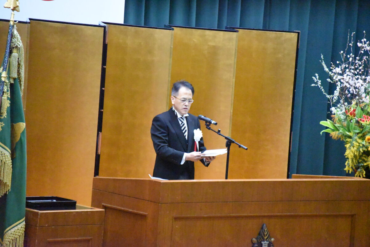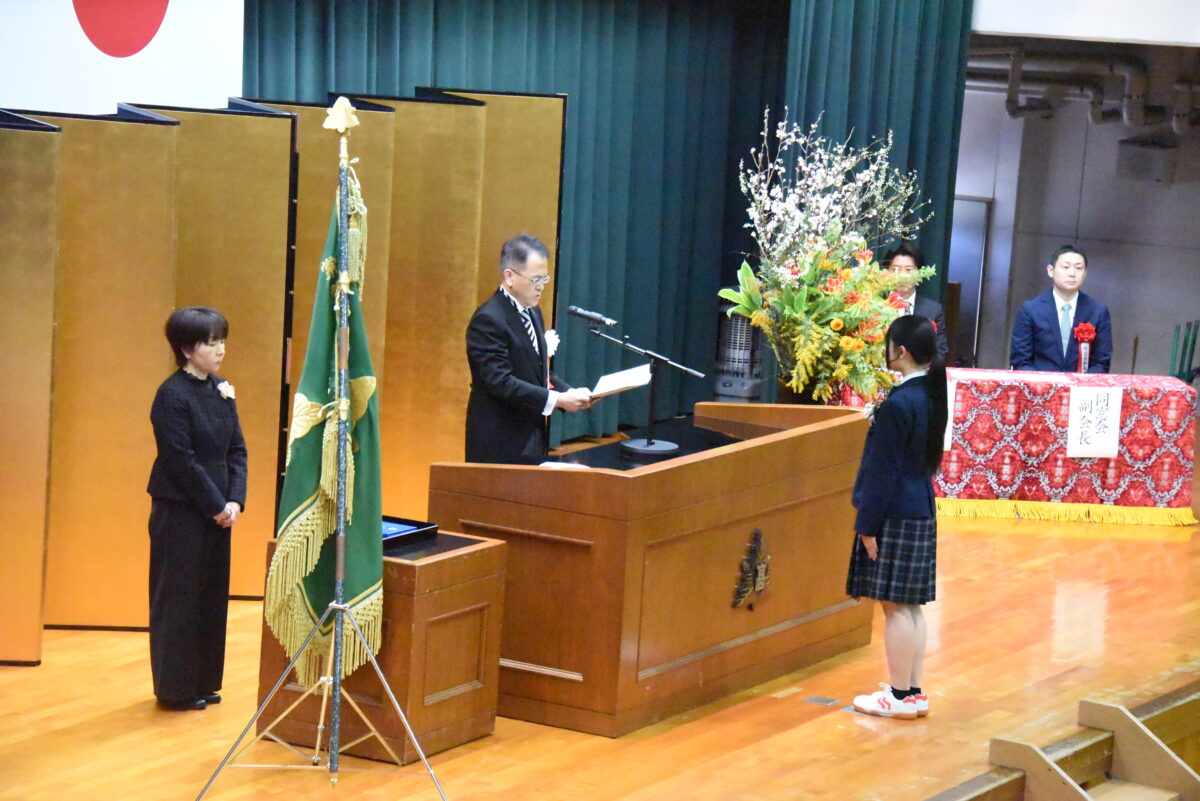 PTA会長今林隆司様並びに、同窓会副会長佐藤栄作様にご祝辞をいただきました。