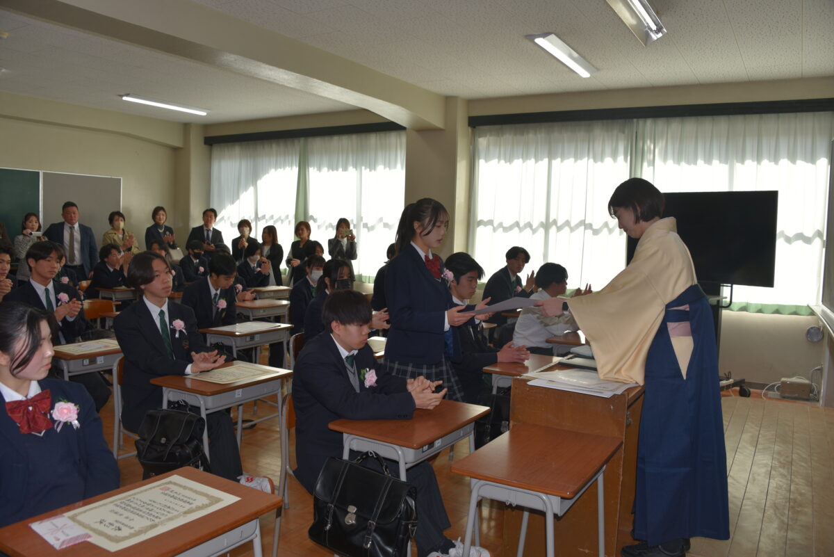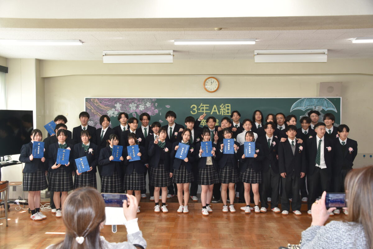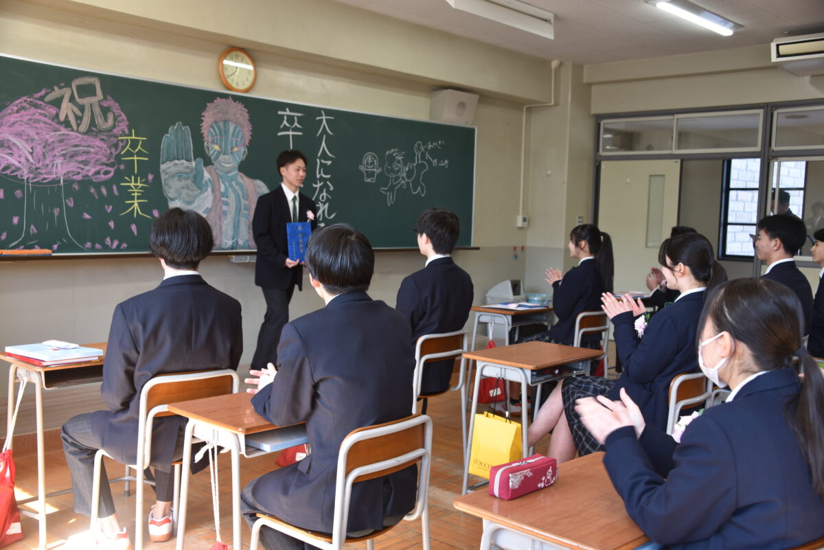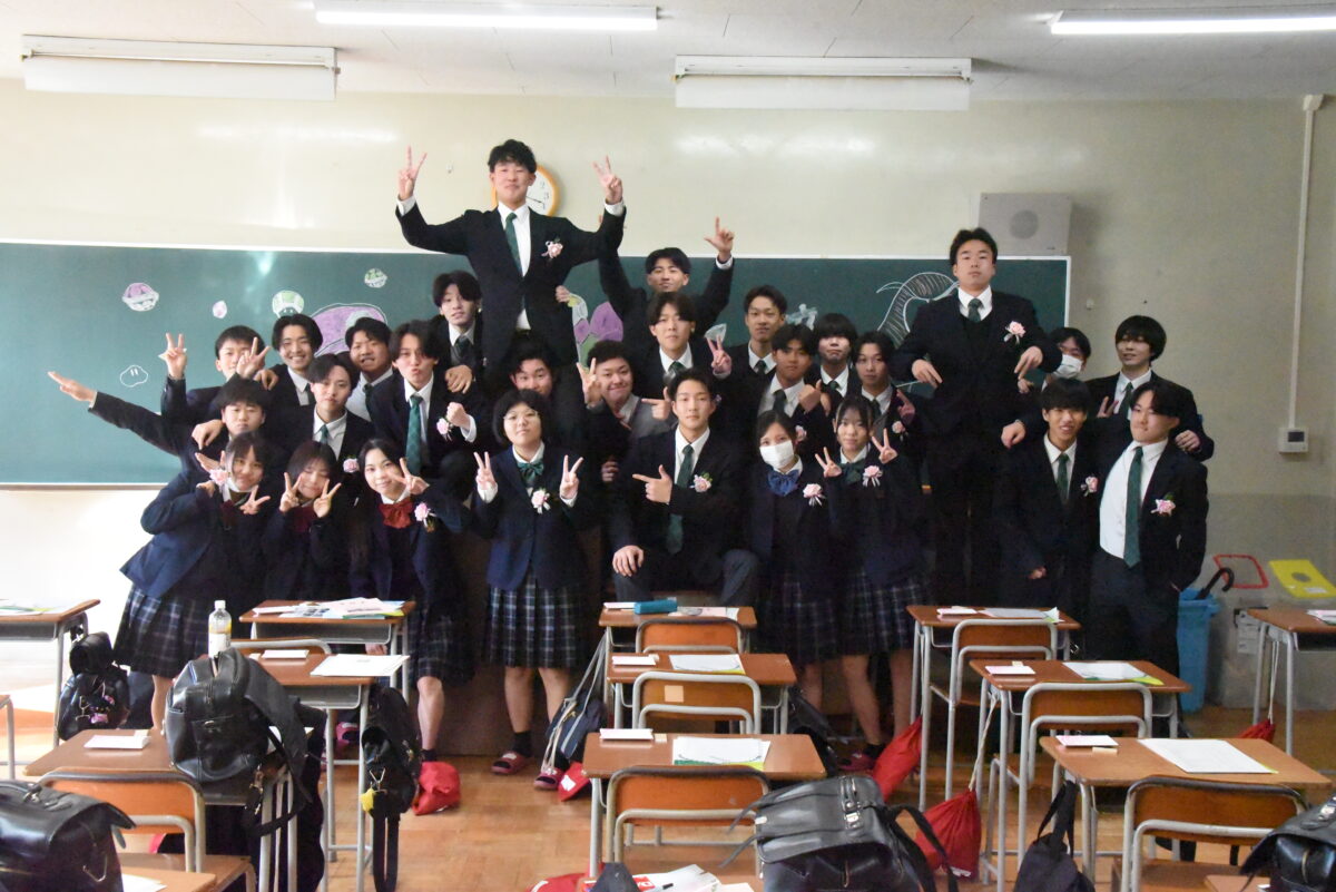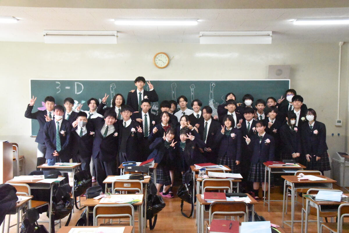 3月1日(日)の卒業証書授与式の後、3年生は各クラスに移動し担任の先生とクラスの仲間と