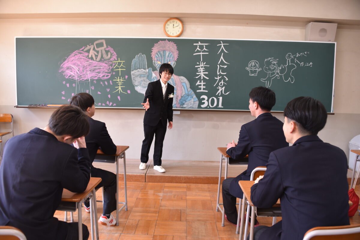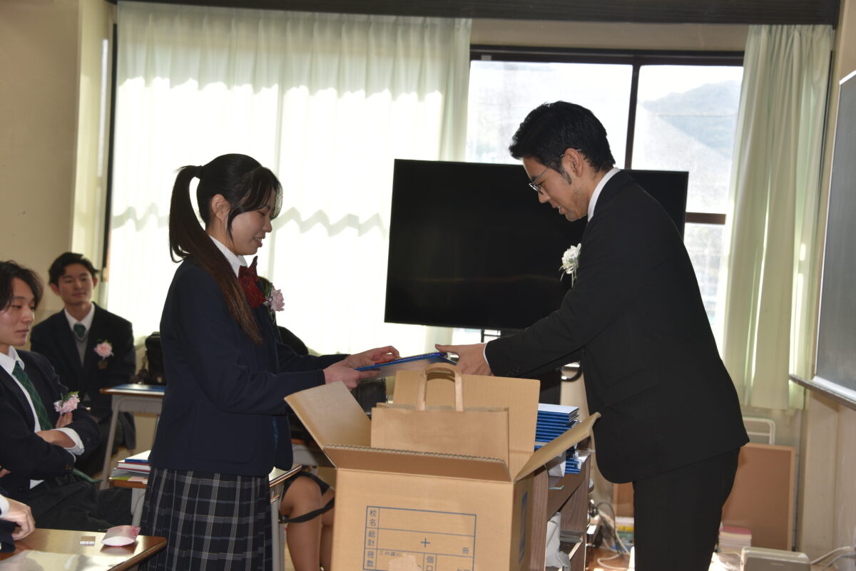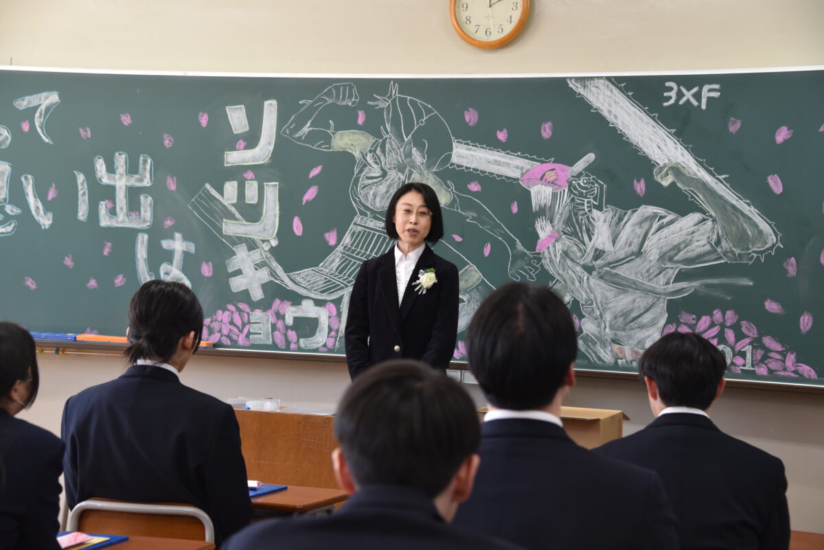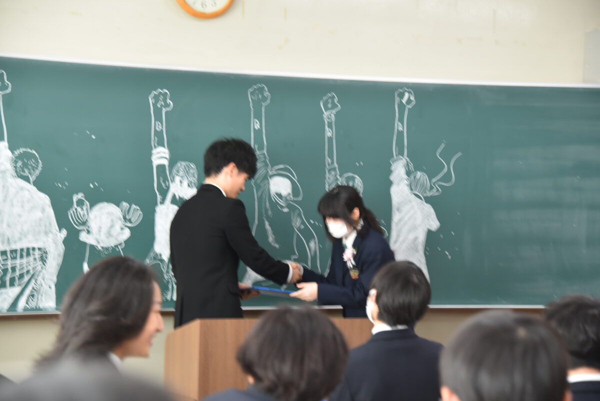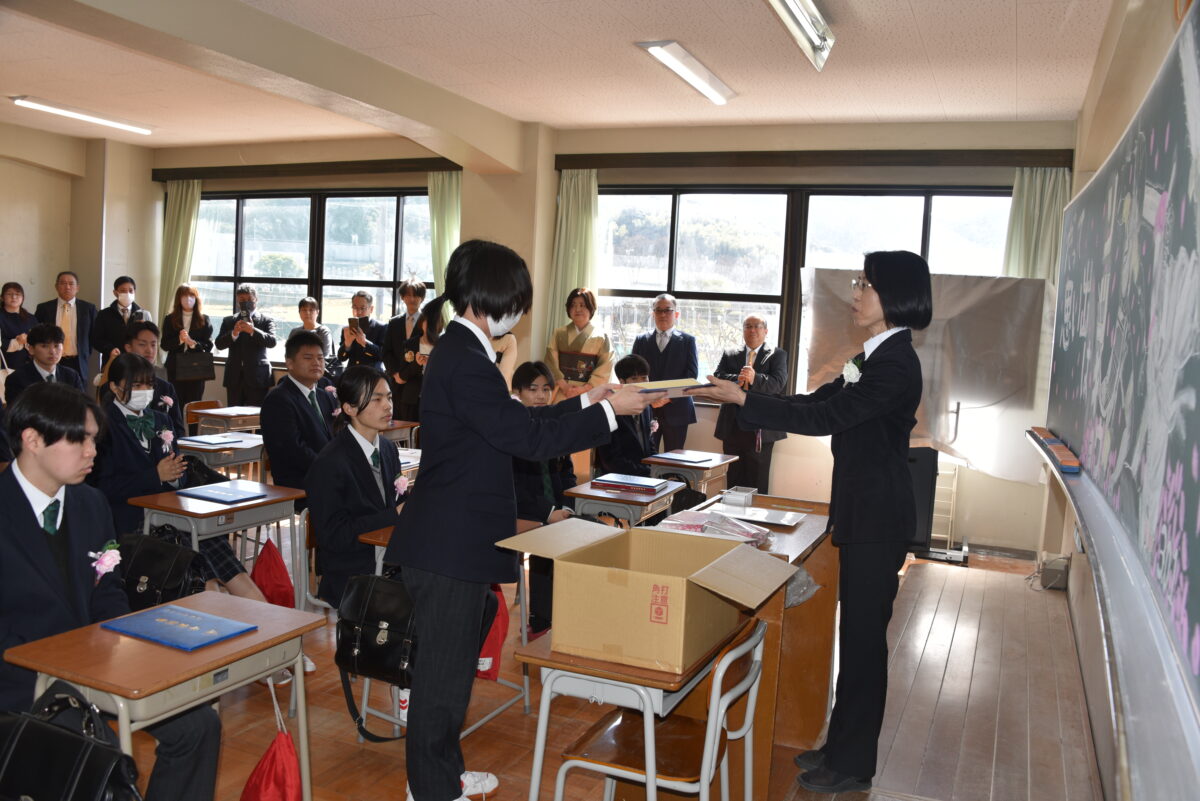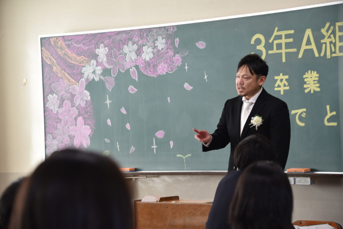 3月1日(日)の卒業証書授与式の後、3年生は各クラスに移動し担任の先生とクラスの仲間と