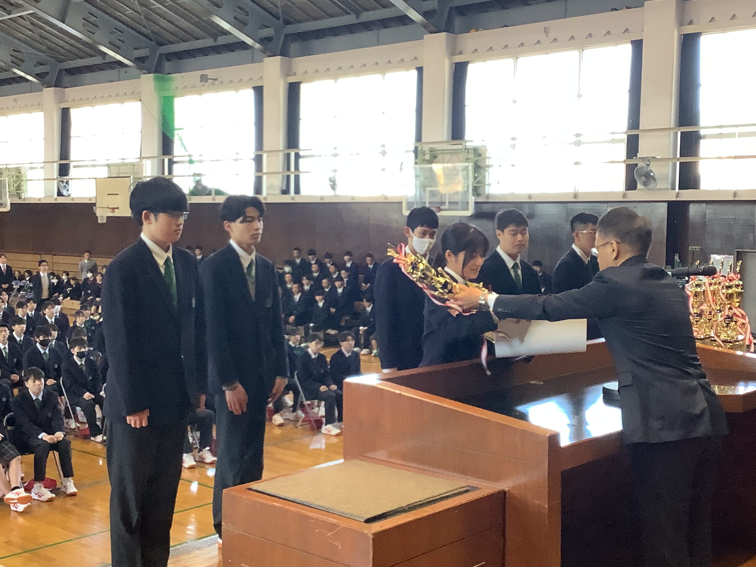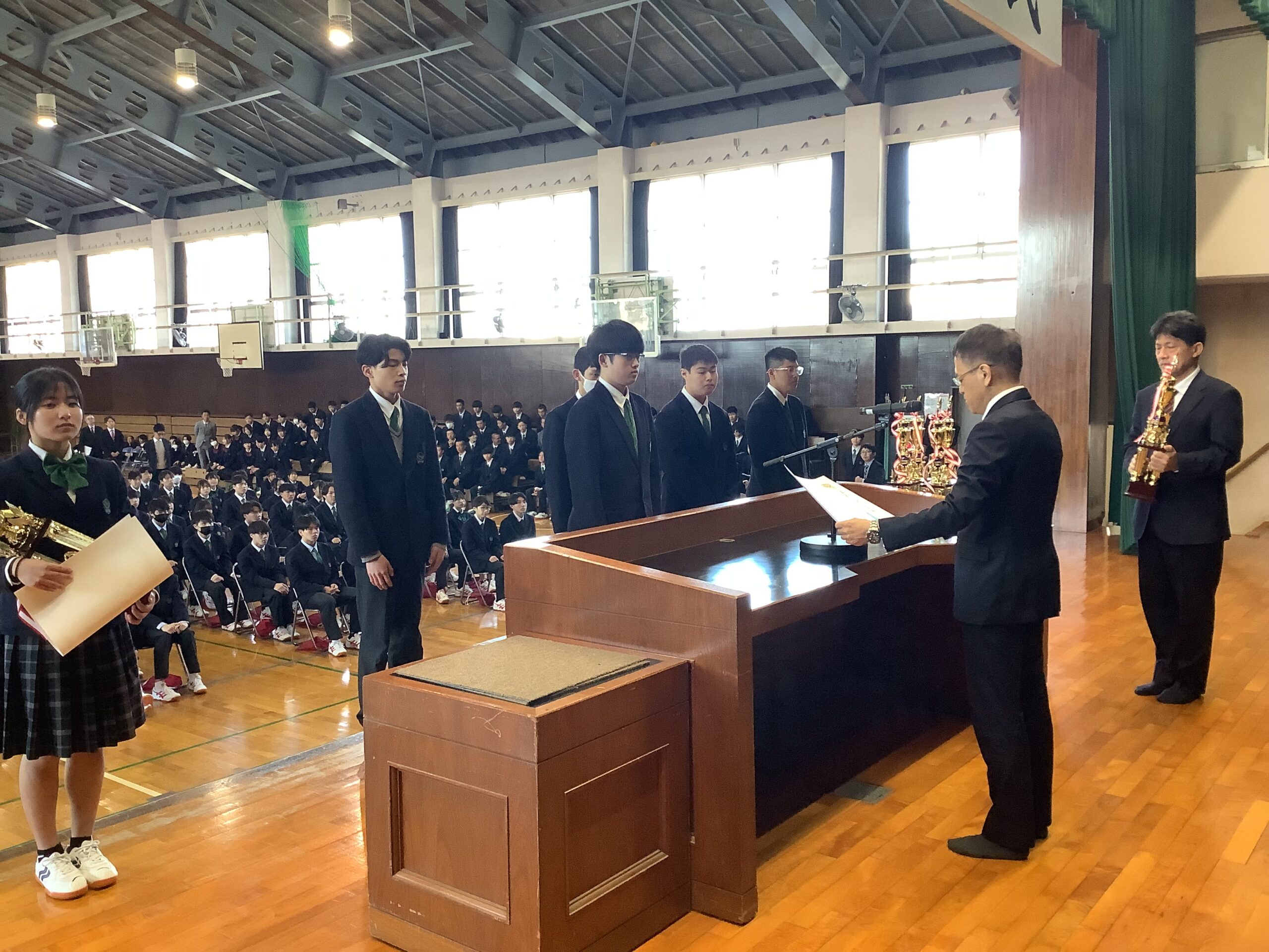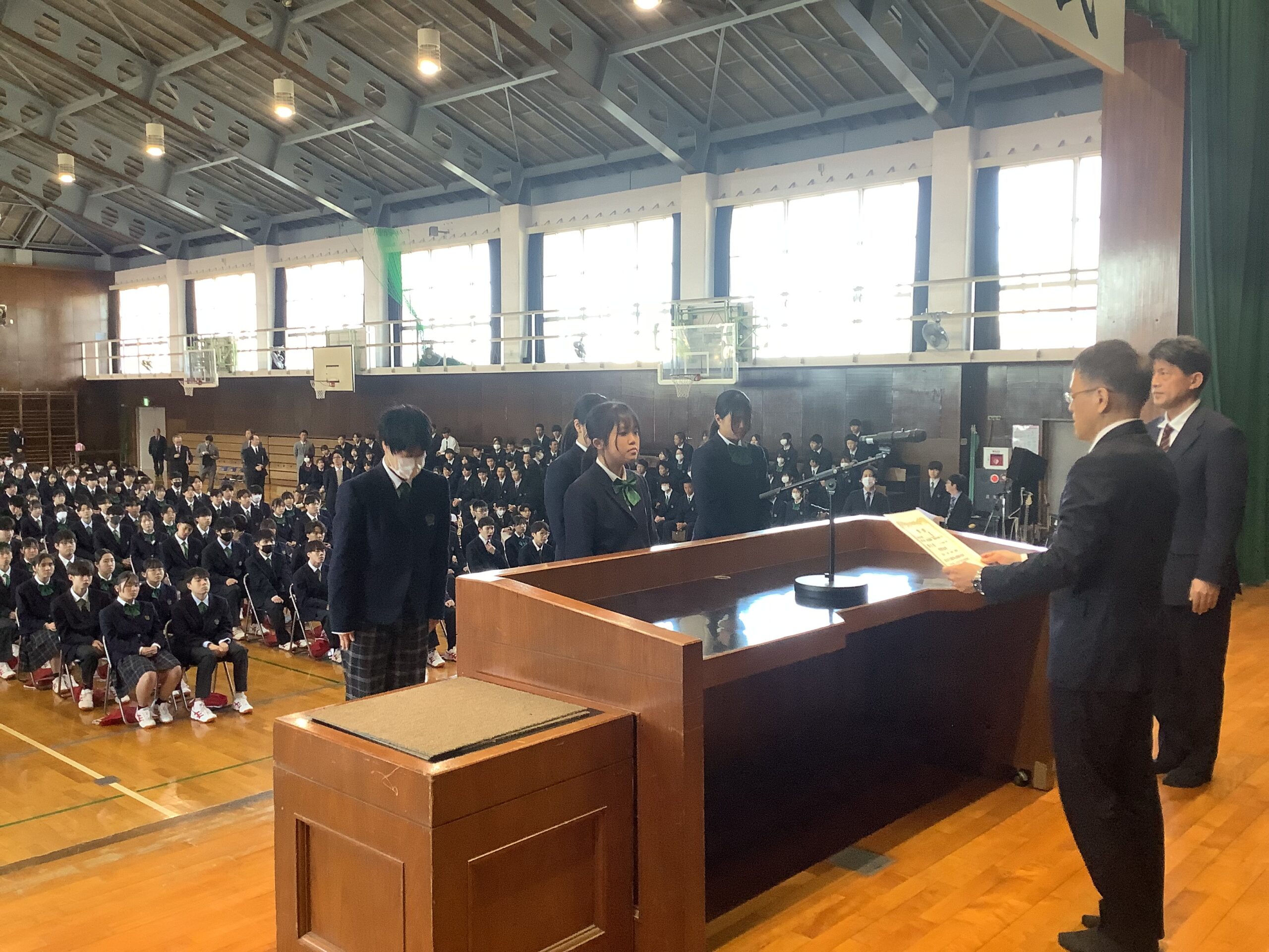 4月8日(水)、新入生と在校生との対面式が行われました。その後、表彰式もおこなわれました。